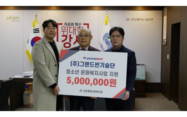 그랜드썬기술단, 부산 강서구 청소년 문화복지 지원 위해 500만원 기부