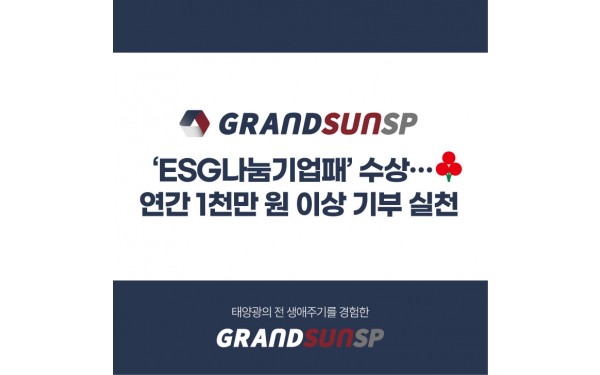 그랜드썬기술단에스피(SP), ‘ESG나눔기업패’ 수상…연간 1천만 원 이상 기부 실천