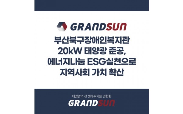 그랜드썬기술단,부산 북구 장애인복지관 20kW 태양광준공, 에너지나눔 ESG 실천으로 지역…