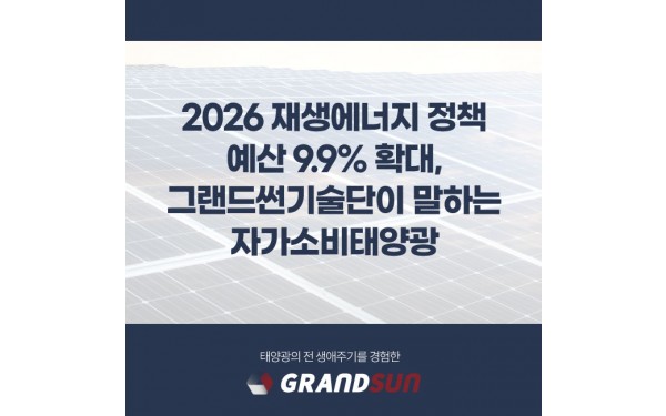 2026 재생에너지 정책 예산 9.9% 확대, 그랜드썬기술단이 말하는 자가소비태양광