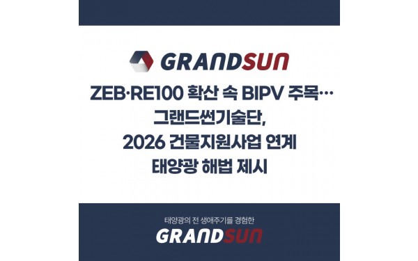 ZEB·RE100 확산 속 BIPV 주목…그랜드썬기술단, 2026 건물지원사업 연계태양광 …